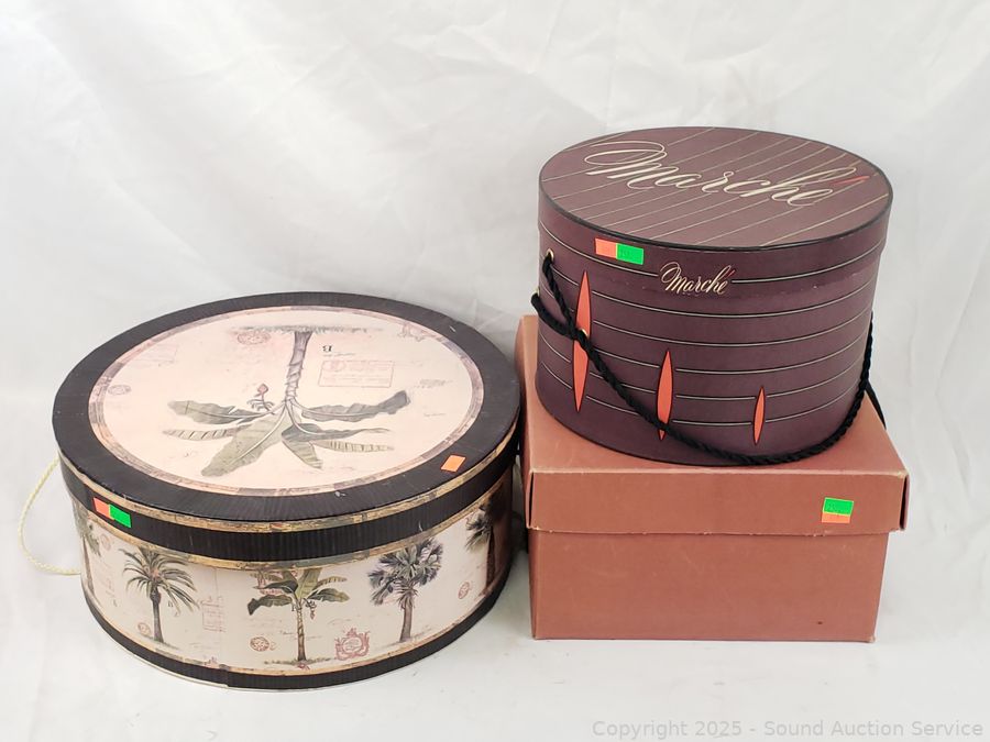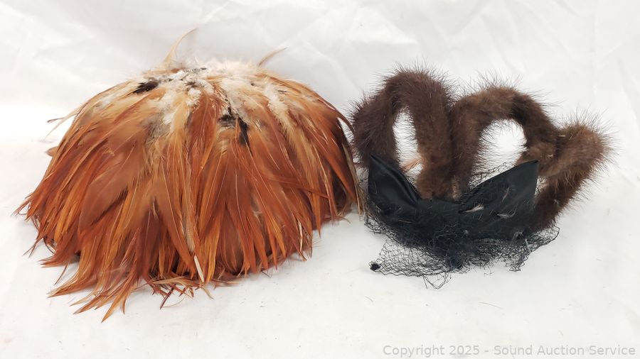 One is feather, one is fur. 10" to 14" Dia. hat boxes. Refer to photos for lot contents, more details.