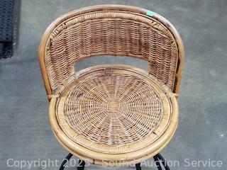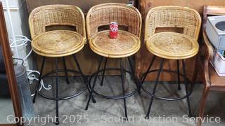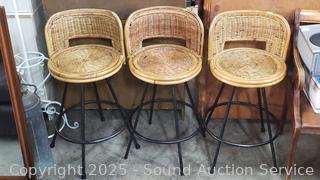 Lot #0066: 3 Wicker Wove Steel Swivel Bar Stools