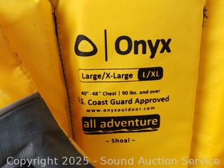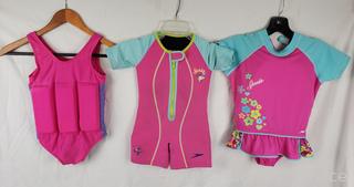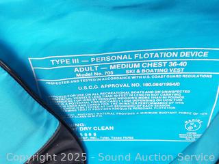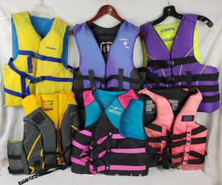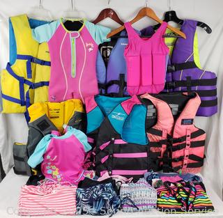 Lot #0037: 6 Life Vests, Child's Vest & Wet Suit, Women's Swimsuits