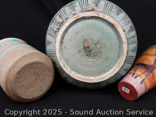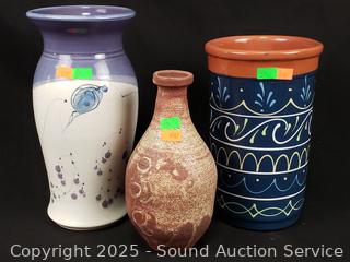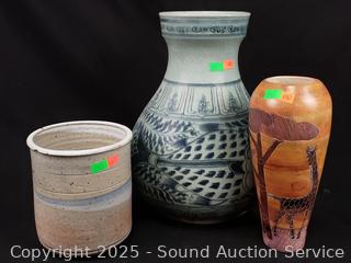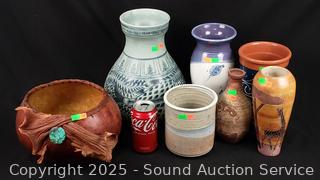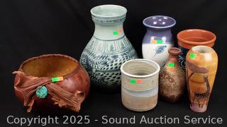 Lot #0279: 6pc Pottery Vases & Native Gourd