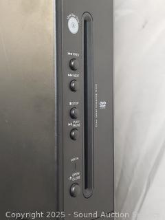 Model NS-LDVD32Q-10A. Appears to be functioning as intended. Some tape residue, scuffs, wear to finish.
