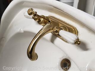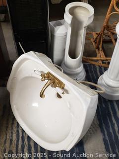 Lot #0079: Porcelain Single Basin Pedestal Bathroom Sink w/Brass Faucet