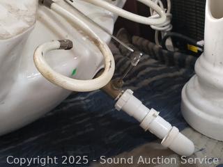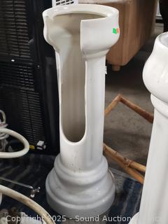 Approx. 25" H x 5.5" to 10" Dia. pedestal, 11" x 26" x 20". Previously installed, dirty from use.
