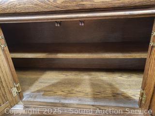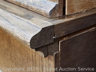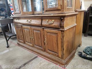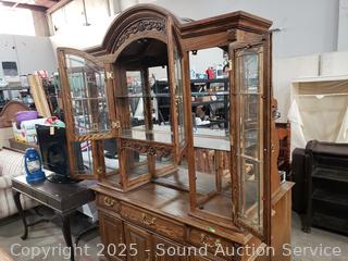 Lot #0004: Reel Oak 2pc Lighted Mirrored Hutch