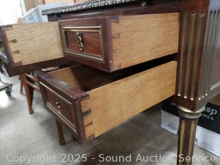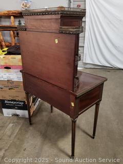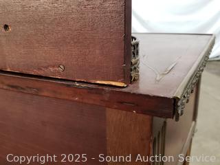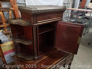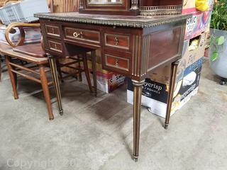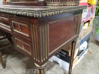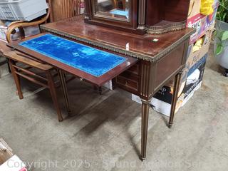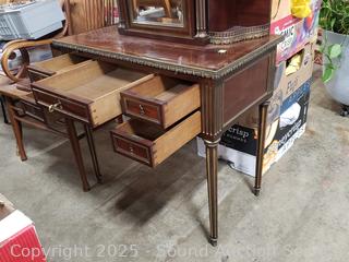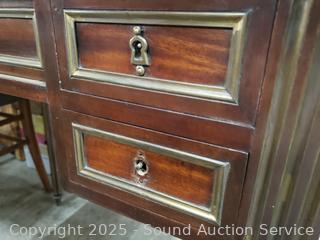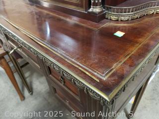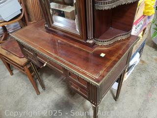 Lot #0003: Vintage Mahogany Brass Inlaid Mirrored Vanity/Desk