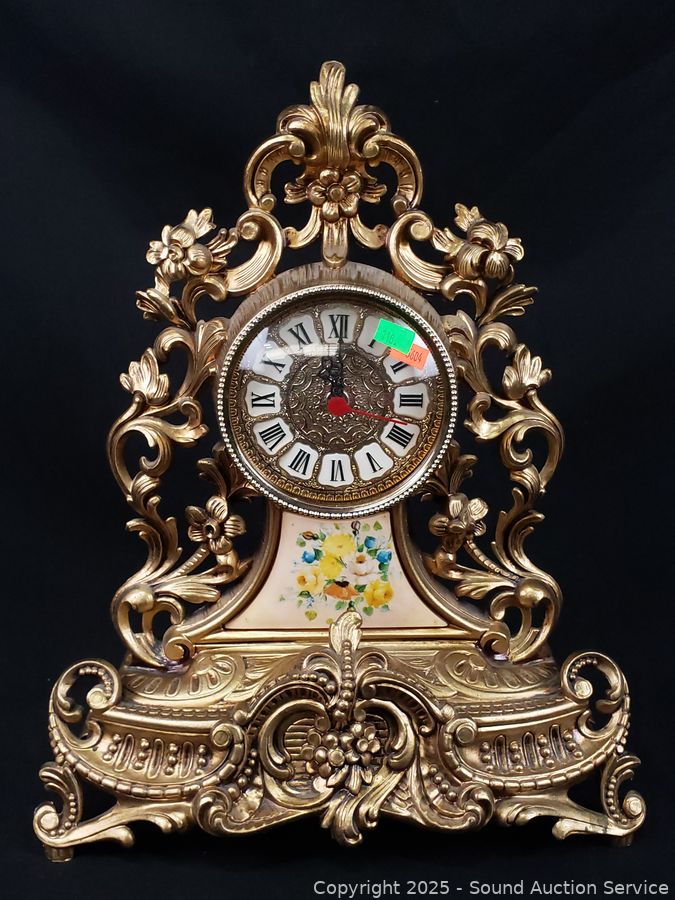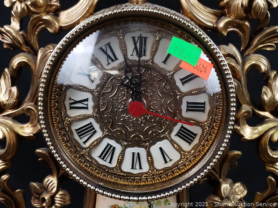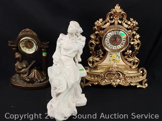 Lot #0118: Vintage Quartz Victorian Style Clocks & Pottery Lady Sculpture