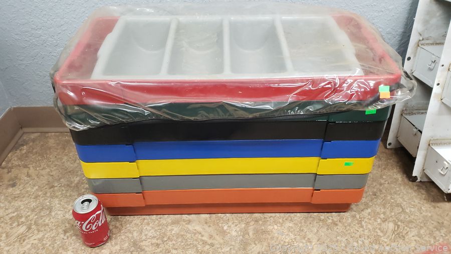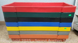 Lot #0314: 7 Stackable Colorful Plastic Bins