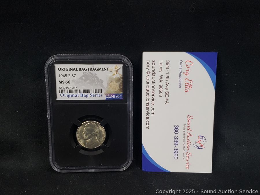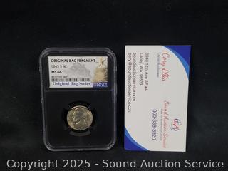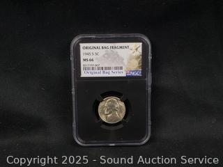 Lot #0082: NGC Graded MS66 Original Bag Fragment 1945-S Nickel