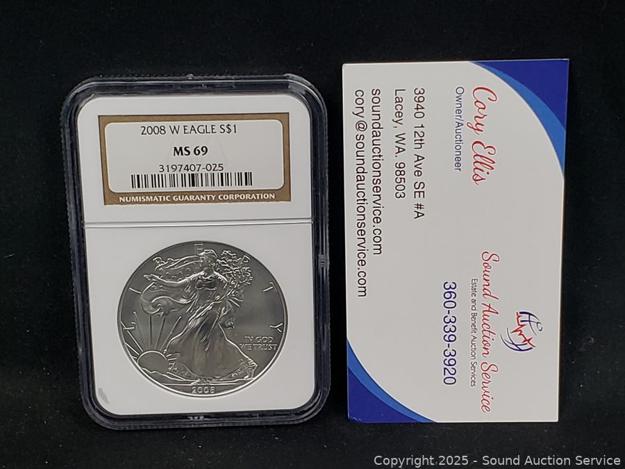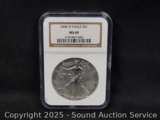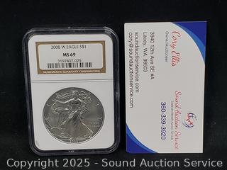 Lot #0085: NGC Graded MS69 2008 1oz Fine Silver Eagle $1 Coin