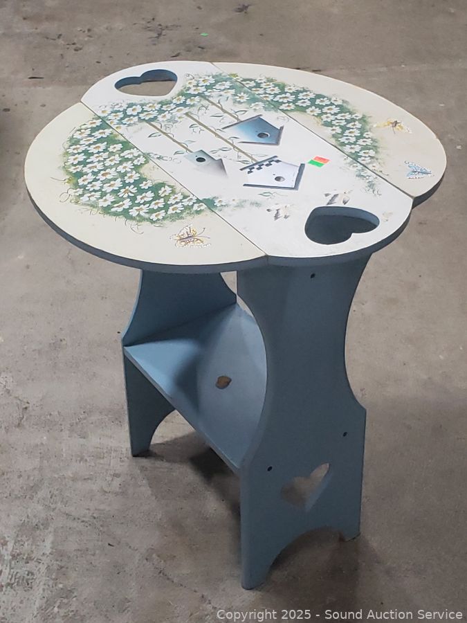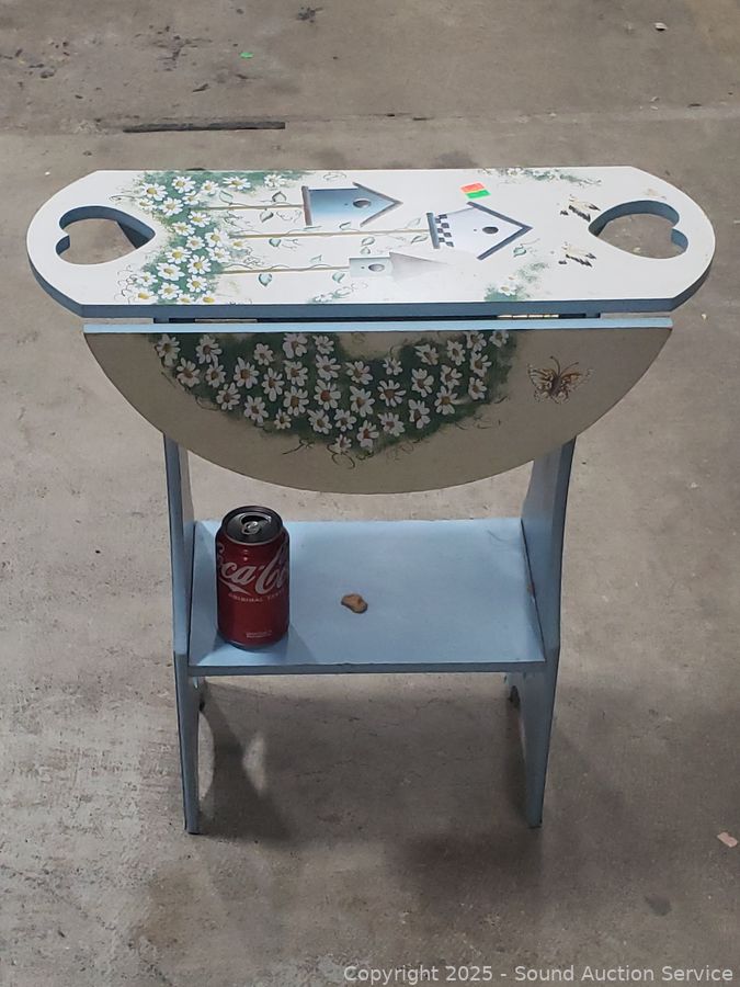 Lot #0026: Painted Drop Leaf Bird House Accent Table