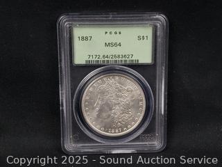 Lot #0086: PCGS Graded MS64 1887 Morgan 90% Silver Dollar