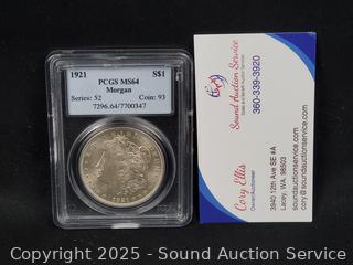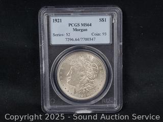 Lot #0078: PCGS Graded MS64 1921 Morgan 90% Silver Dollar
