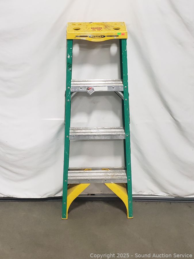 Lot #0317: Werner 4ft Green Fiberglas Step Ladder
