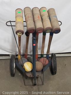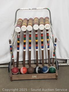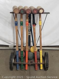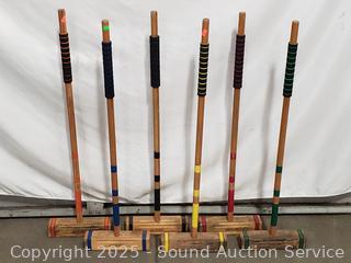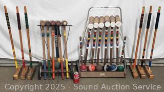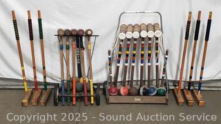 Lot #0052: 2 Vintage Croquet Sets w/6 Spare Mallets