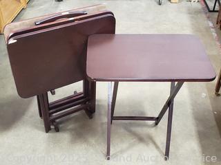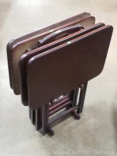 Lot #0018: 4 Pc set Dark finish TV Trays with Stand