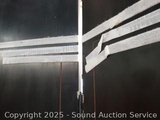 Has Velcro stuck to it to hold panels closed. 7ft H x 9ft W, 18" panels. Various scuffs, chips in enamel, etc. Refer to photos for more details.