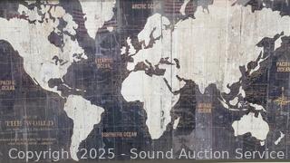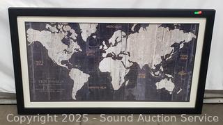 Lot #0048: Blue & White World Map Print w/Matching Frame