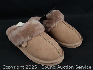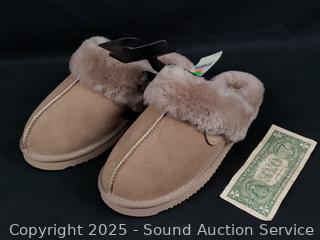 Lot #0120: Dearfoams Fireside Genuine Shearling Slippers S:10