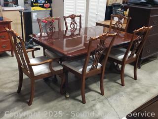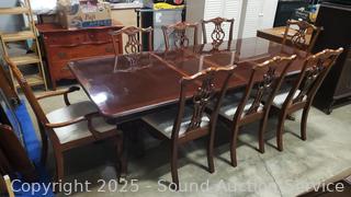 Lot #0042: Vintage Lexington Mahogany Banquet Dining Table w/8 Chairs
