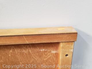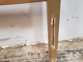 Steel rails, wood slats. Various scuffs and scratches. 22.5" to 36" H x 41.5" W with 76.5" long rails.