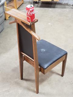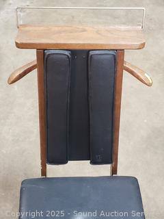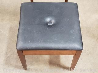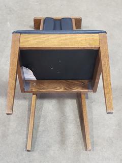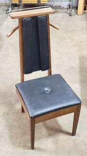 Vinyl lift top seat. Some wear to finish. A bit wobbly. 38.75" H x 17.25" W 16.5" to seat.