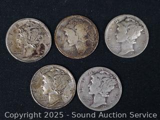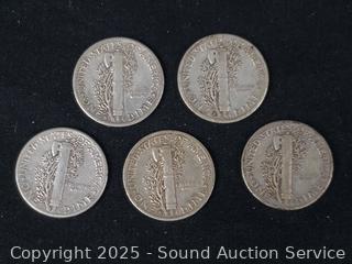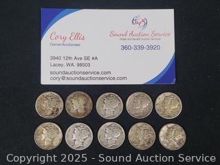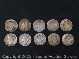Lot #0091: 10 1930's-40's 90% Silver US Mercury Dimes