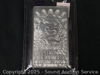 Lot #0073:     10oz .999 Fine Silver Bar #39