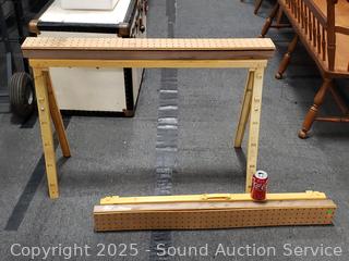 Lot #0270: 2 Yellow Steel Framed Folding Sawhorses