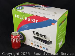 Appears to be complete, items inside are still sealed. Comes with 4 cameras & display. Refer to photos for more details.