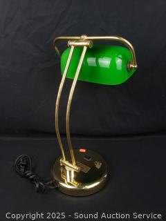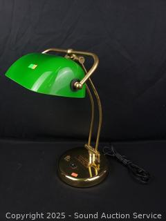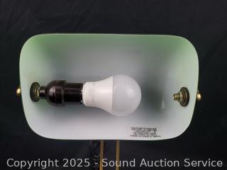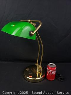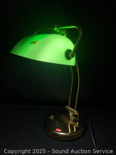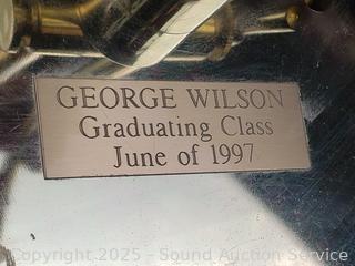 16" H x 10" D. Appears to be functioning as intended. Some scuffs, wear to finish. Has a Graduating Class plaque mounted to base.