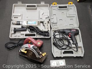 Lot #0285: Chicago Circular Saw, 1/2" Variable Speed Drill, Craftsman 3/8" Drill