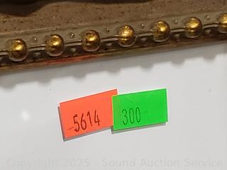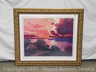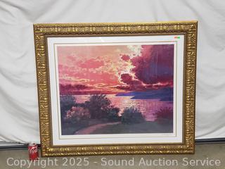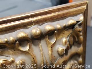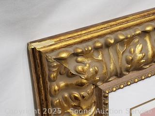 Professionally framed with glass. Ornate gold gilt frame, see a small chip on one corner.