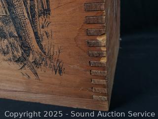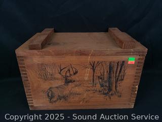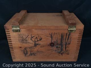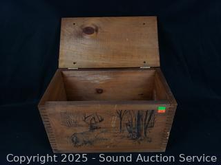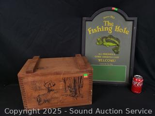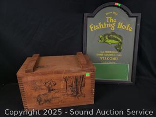 Lot #0147: Dovetail Wood Box w/Deer Motif & The Fishing Hole Sign