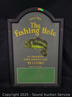 10" H x 16" x 9" box, 24" x 16" fishing sign.