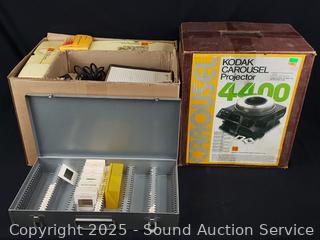 Lot #0290: Kodak 4400 Carousel Projector w/Slides & Tape Reels