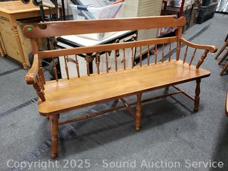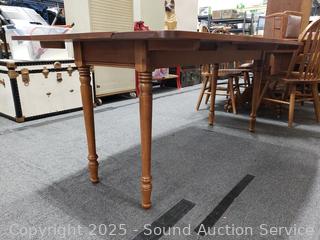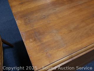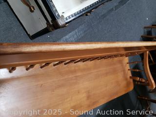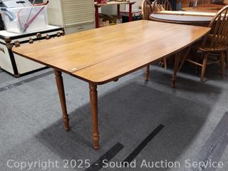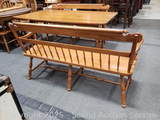 Lot #0002:     Mid Century Maple Picnic Table Style Drop Leaf Dining Table w/2 Windsor Benches $$$$