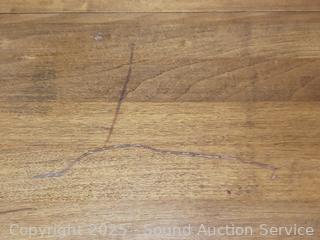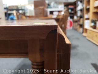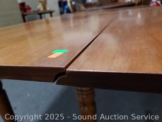 One leaf has a crack. Olde patina finish. Some wear to finish, overall good condition. Approx. 29.5" H x 20" W x 72" L with (2) 10" Drop leaves.