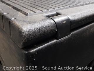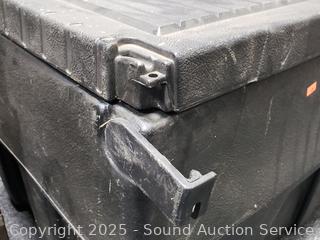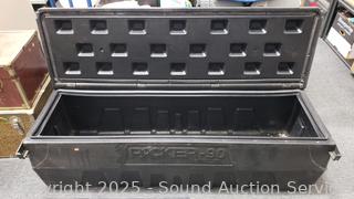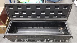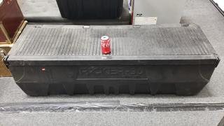 Approx. 18.5" H x 60" W x 19" D. Can be locked closed with padlocks.