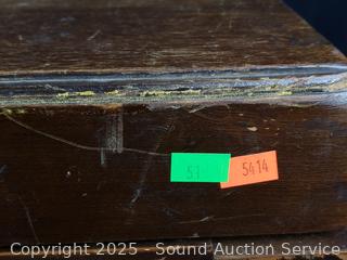 Has power. Turntable/Tape appears to be functioning, no sound from tuner/phono/mic, cords have damage. Various scuffs, scratches, wear from age, use. 11.5" H x 21.75" x 14.5" D.