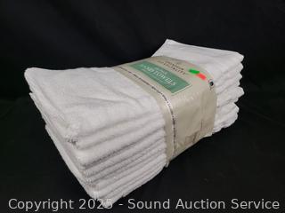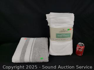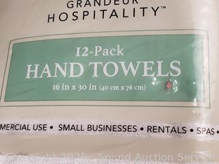 Lot #0261: 12pk Grandeur Hospitality White Cotton Hand Towels & 1 Bath Towel