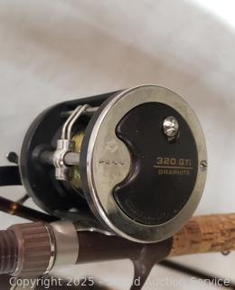 Approx. 8ft to 9ft rods, 2 Penn 320GTi reels. Refer to photos for lot contents, more details.