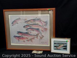 Lot #0047: 2pc Salmon Lithograph Artwork