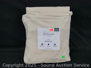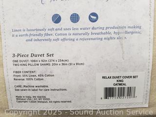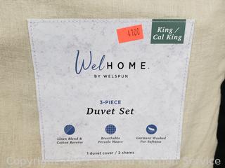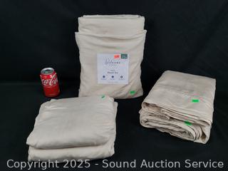 Lot #0255: 3pc King Duvet Cover & 6pc Queen Beige Sheet Set