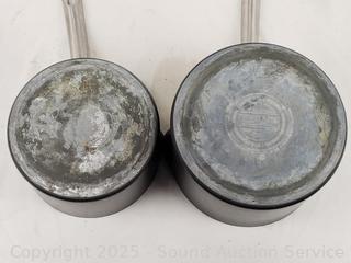2qt, 3qt saucepans, 4qt, 6qt boiling pots, 8|10|12" skillets. Signs of wear from use.