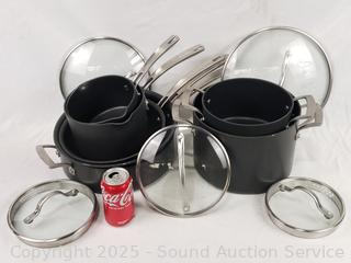 Lot #0265: 7pc Kirkland Hard Anodized Non-Stick Cookware w/5 Lids