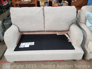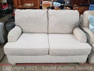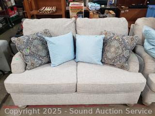 Lot #0001: Ashley Furniture Beige Loveseat w/4 Throw Pillows