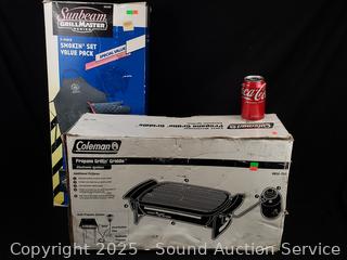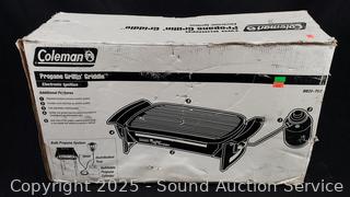 Lot #0033: Coleman Propane Two Burner Grill Griddle & 9pc Grill Set