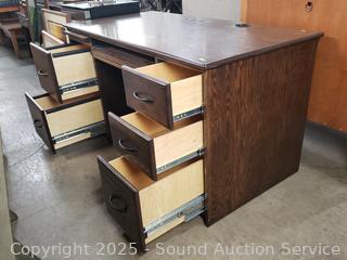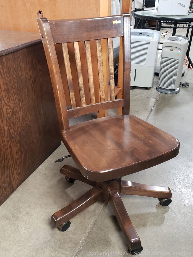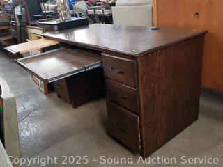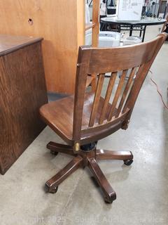 Lot #0045: Dark Stained Oak Computer Desk w/Matching Chair