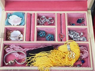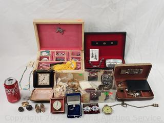 Lot #0285: Jewelry Boxes with Assorted Fashion Jewelry, Watches, Clock