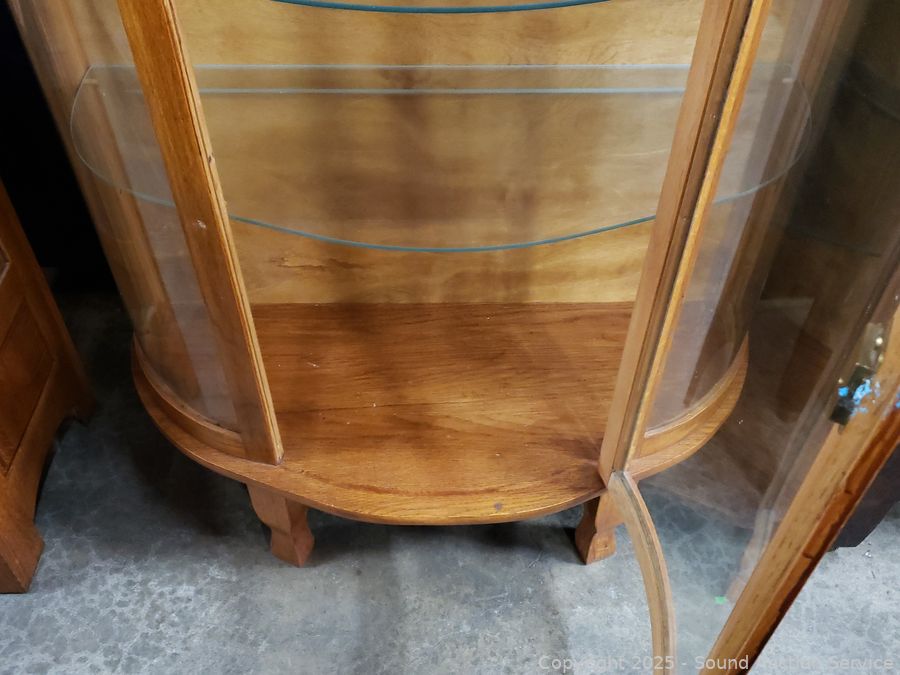 Lot #0015: Oak Lighted Curved Glass 3-Shelf Bookcase